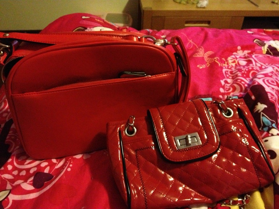 红色邮差包+链条
