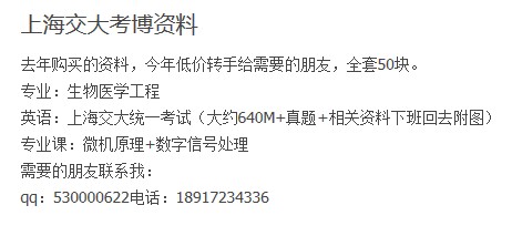 低价转让上海交大考博资料,全套50块。