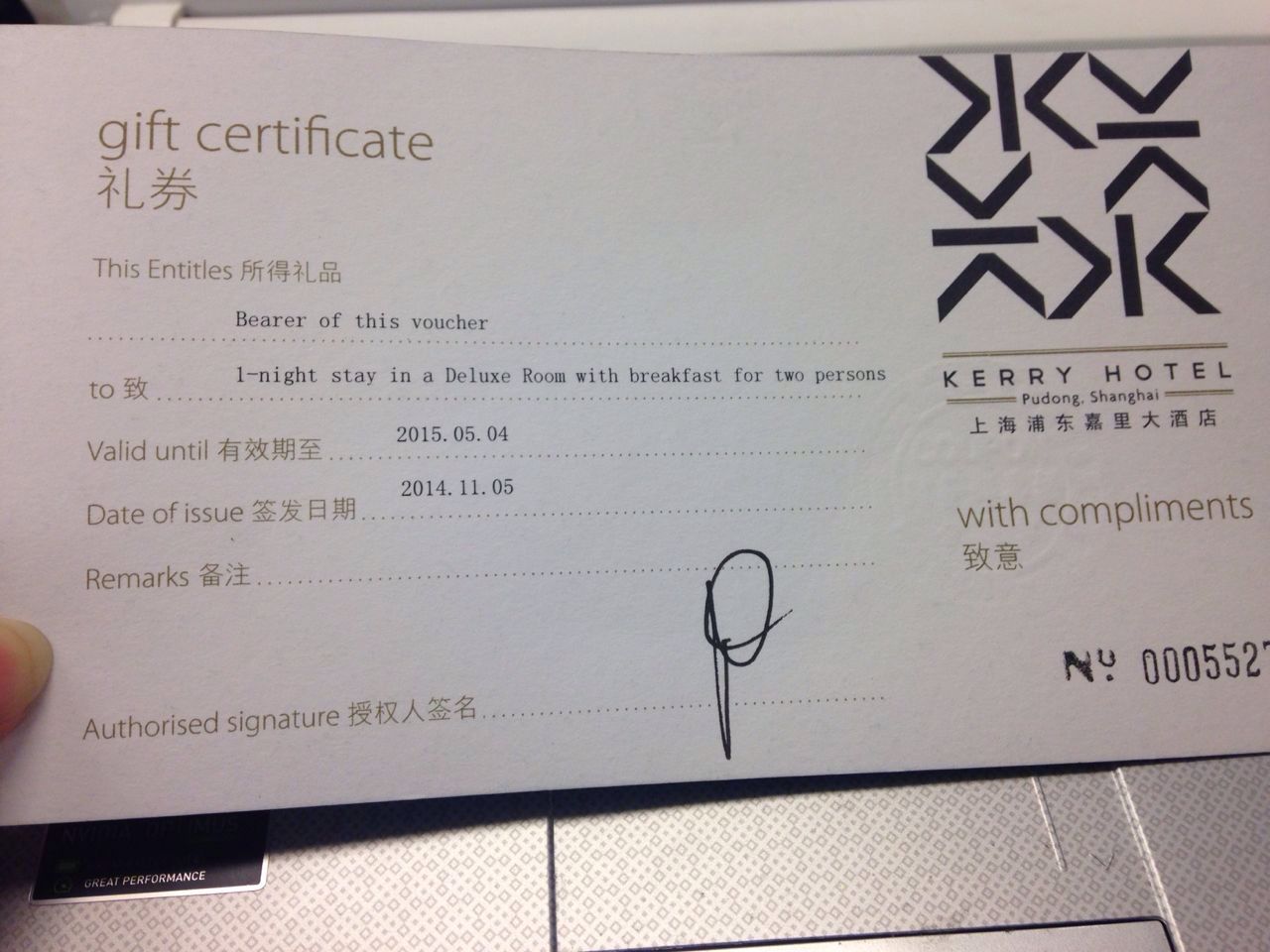 上海浦东嘉里大酒店豪华双人床 含双人早餐 1000元