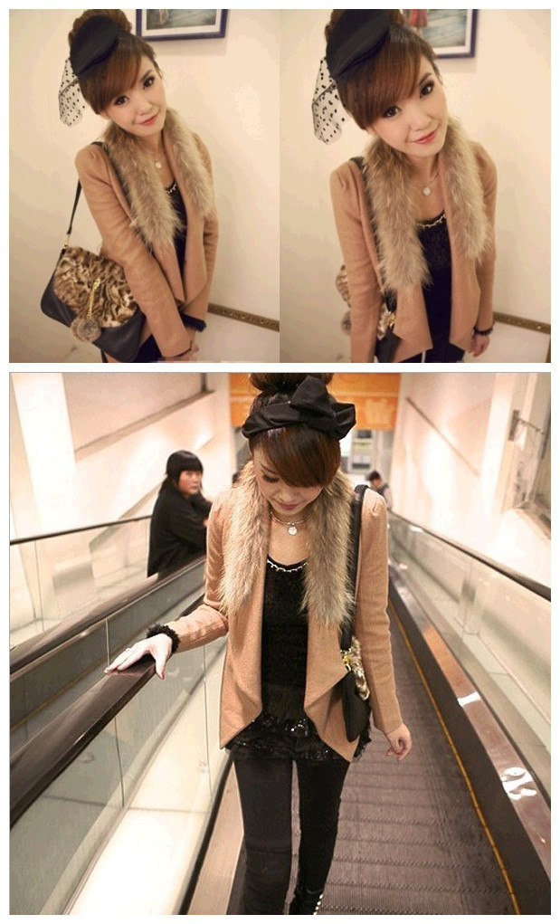百搭 毛呢子短款 不规则狐狸毛翻领外套