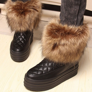 冬新款厚底松糕仿狐狸毛雪地靴