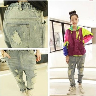全新有吊牌 街头时尚 破的很有味道的一个牛仔哈伦裤