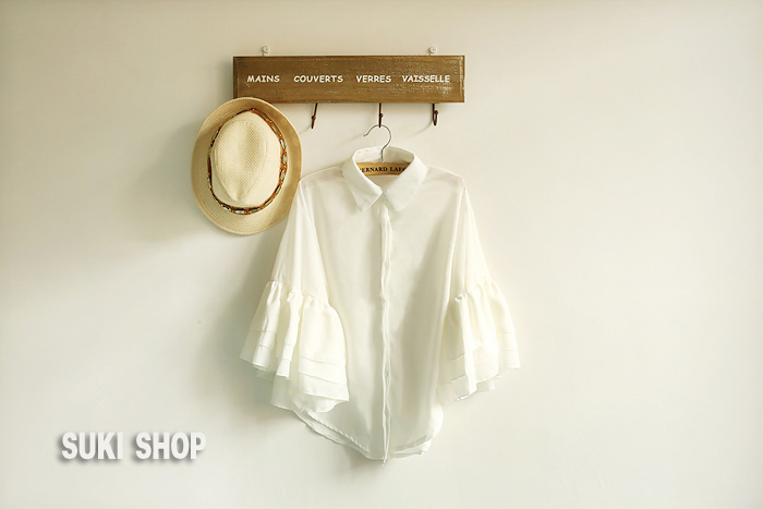 2013春夏新款 韩版甜美风 花朵式喇叭袖雪纺衬衫