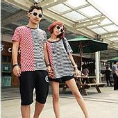韩版新款休闲宽松加大码装条纹沙滩拼