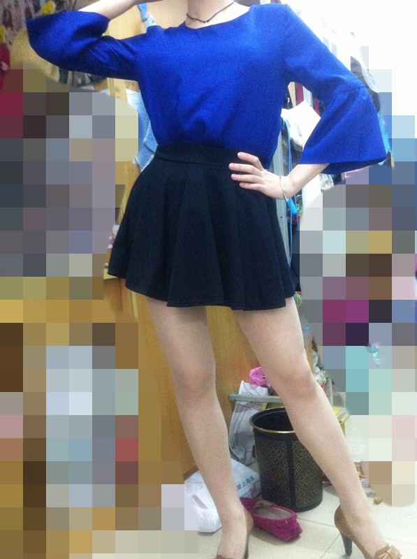 显瘦气质短款麻纱料喇叭袖造型衫 高腰百搭百褶短裙