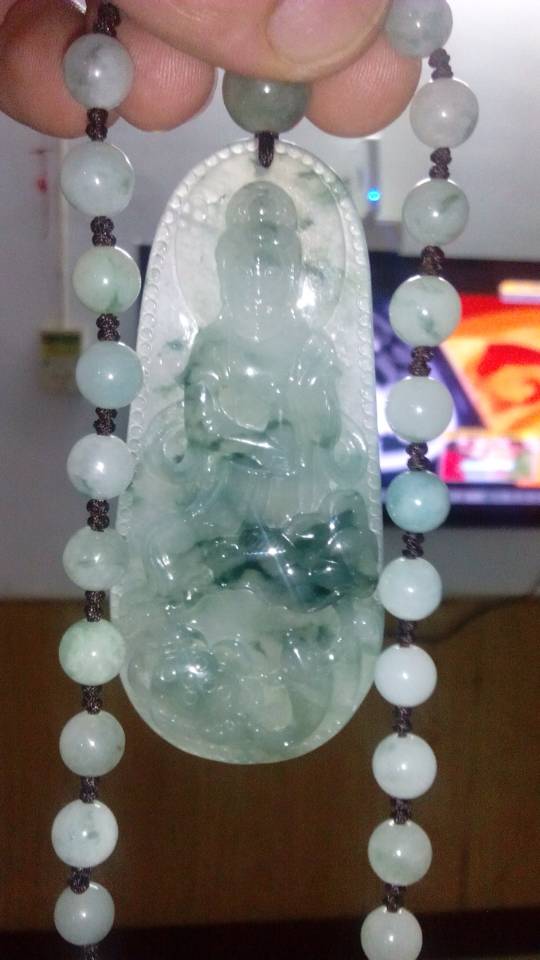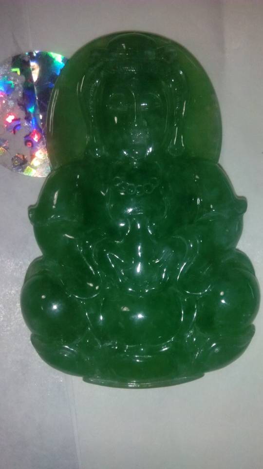 翡翠A货大观音正阳绿冰糯种。国家级鉴定证书。联网可查。