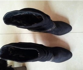 超软绒毛搭扣高跟中筒靴子 多穿法