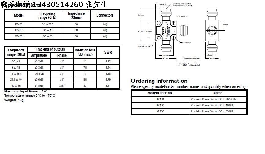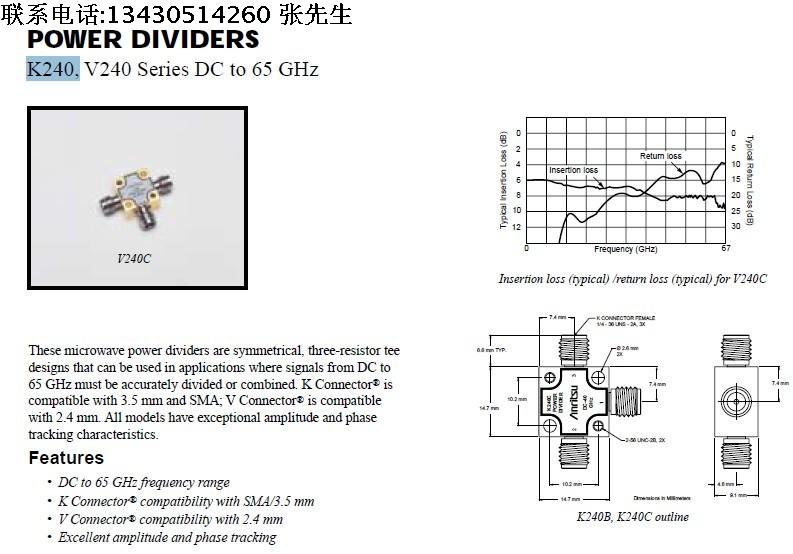 Anritsu K240B DC-40GHz 一分二同轴功率功分器 可代替11667B/11636B