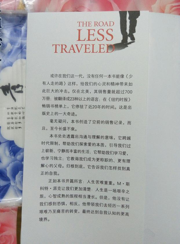 《少有人走的路:心智成熟的旅程》是一本震惊世界的名著,出版后虽未作任何宣传,但经人们口耳相传,迅速畅销起来,它曾在美国最著名的《纽约时报》畅销书排行榜上连续上榜近二十年,创下了出版史上的一大奇迹。或许在我们这一代,没有任何一本书能像《少有人走的路:心智成熟的旅程》这样,给我们的心灵和精神带来如此巨大的冲击。仅在北美,其销售量就超过七百万册;被翻译成二十三种以上的语言;在《纽约时报》畅销书榜单上,它停驻了近二十年的时间。这是出版史上的一大奇迹。 毫无疑问,《少有人走的路:心智成熟的旅程》创造了空前的销售记录,而且,至今长盛不衰。 《少有人走的路:心智成熟的旅程》处处透露出沟通与理解的意味,它跨越时代限制,帮助我们探索爱的本质,引导我们过上崭新,宁静而丰富的生活;它帮助我们学习爱,也学习独立;它教诲我们成为更称职的、更有理解心的父母。归根到底,它告诉我们怎样找到真正的自我。 正如《少有人走的路:心智成熟的旅程》开篇所言:人生苦难重重。M·斯科特·派克让我们更加清楚:人生是一场艰辛之旅,心智成熟的旅程相当漫长。但是,他没有让我们感到恐惧,相反,他带领我们去经历一系列艰难乃至痛苦的转变,最终达到自我认知的更高境界。 |