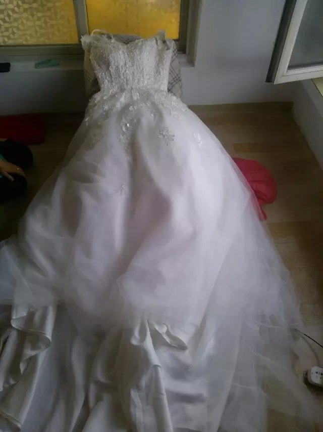 结婚时买的婚纱只穿了两个小时左右 160——170都可以穿腰围1尺9 买时近2千元 现低价出售