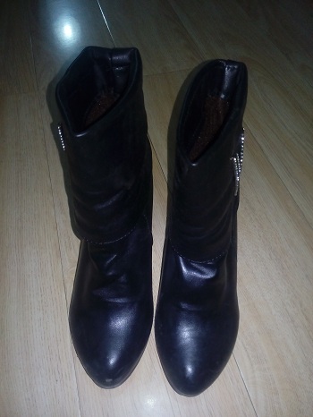 37码 黑色 高跟 女皮鞋 薄冬靴