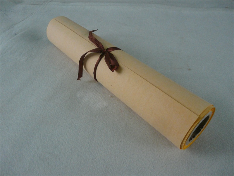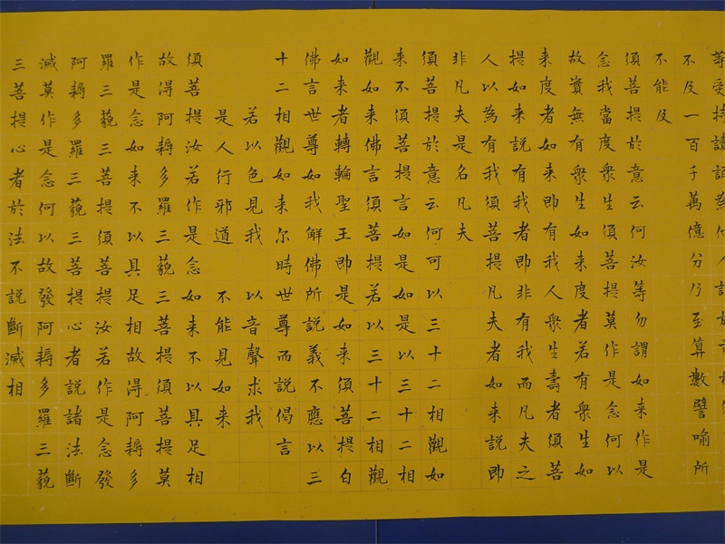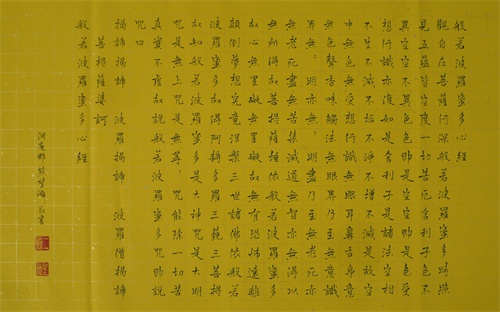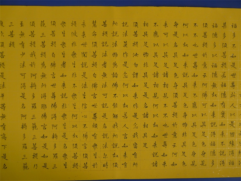 黄色洒金宣纸书写,纸有接,有格2x2cm