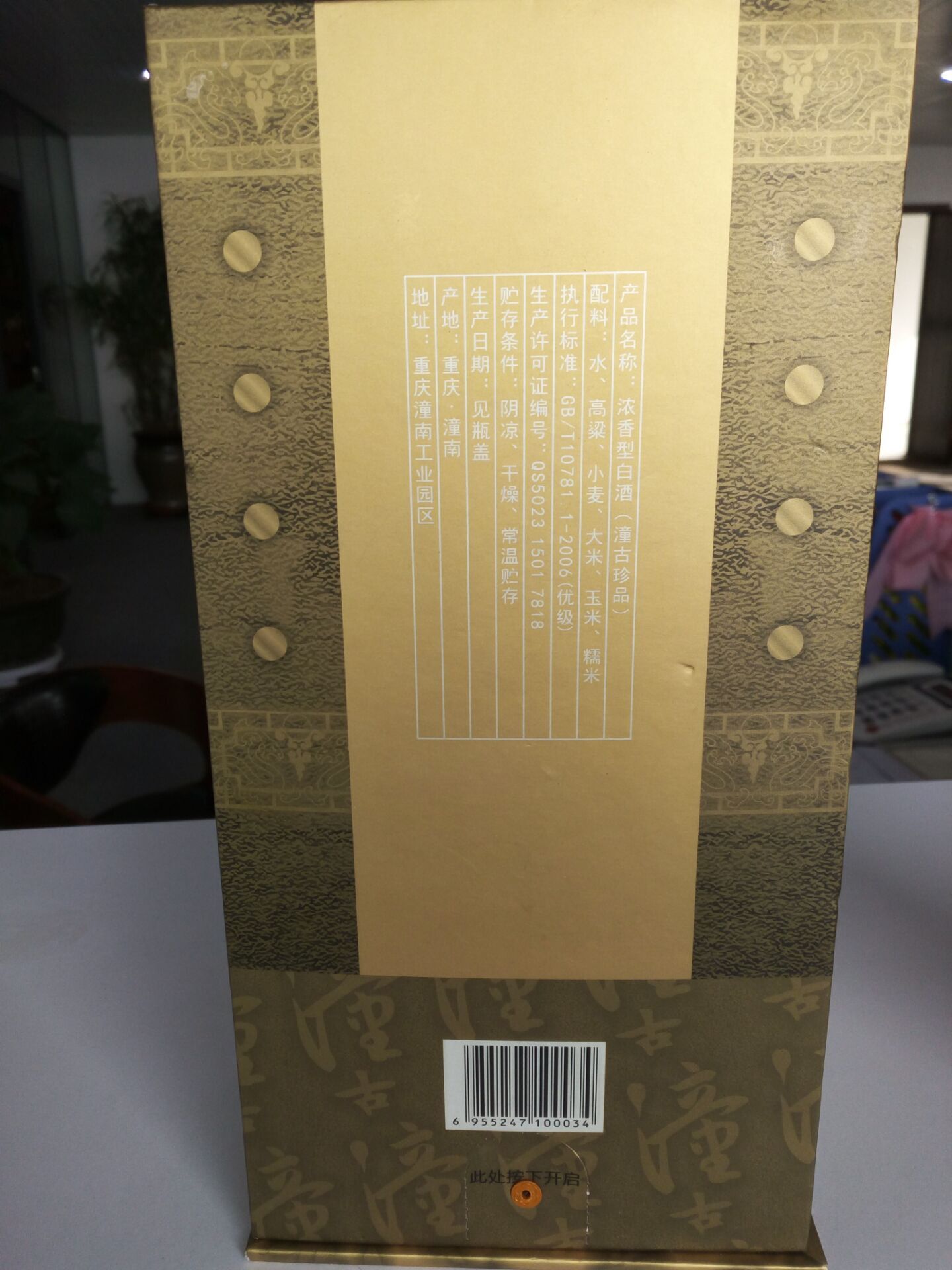 产品名称:潼古浓香型52度白酒500ml(潼古珍品)