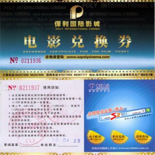 2张金花奥斯卡影城的预售券,有效期到2011年1月19日。想换2张保利博纳的票,使用时间不限的。