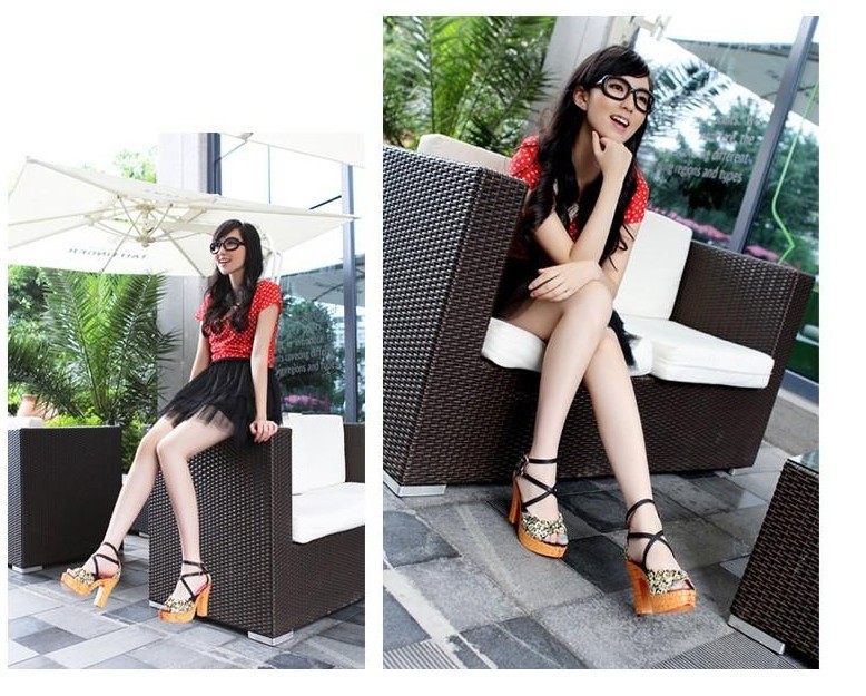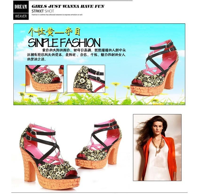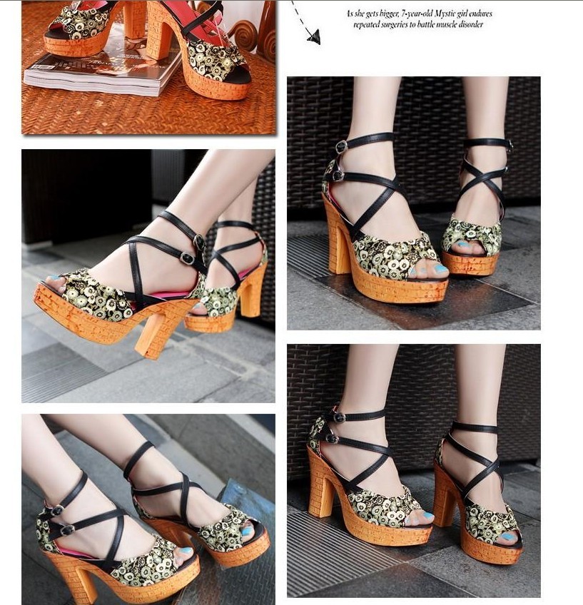 达芙妮新品外贸防水台高跟女鞋厚松糕底粗跟罗马鱼嘴凉鞋