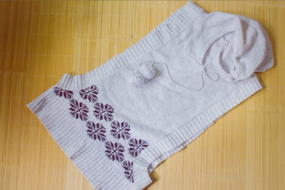 灰色带帽毛线针织