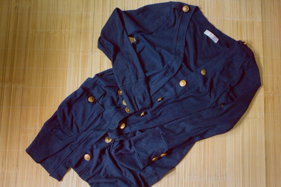 春秋长款深蓝开衫