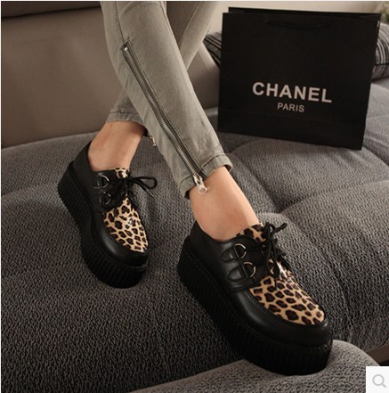 原宿款黑白复古松糕鞋欧美英伦风女鞋 厚底鞋圆头系带单鞋坡跟鞋