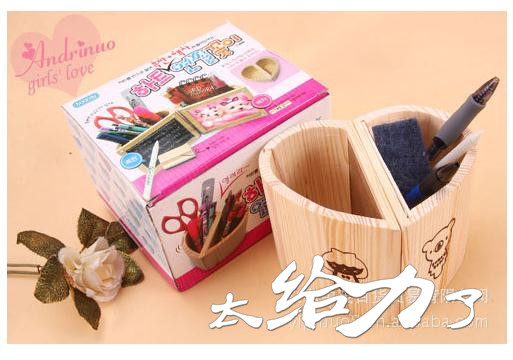韩版桃心原木嗞吸式情侣笔筒—带黑板相框