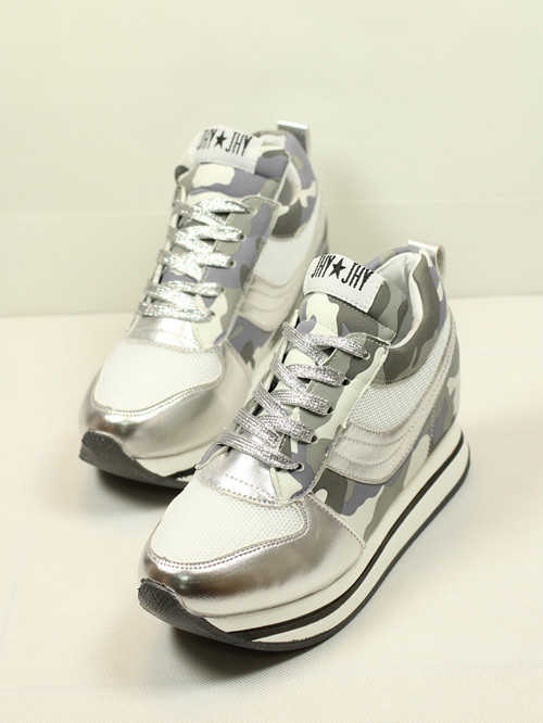 迷彩撞色系带厚底内增高运动鞋