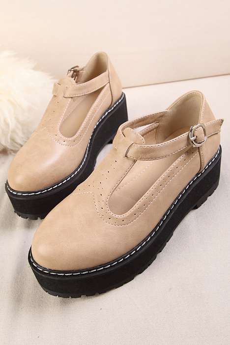 学院风厚底松糕单鞋