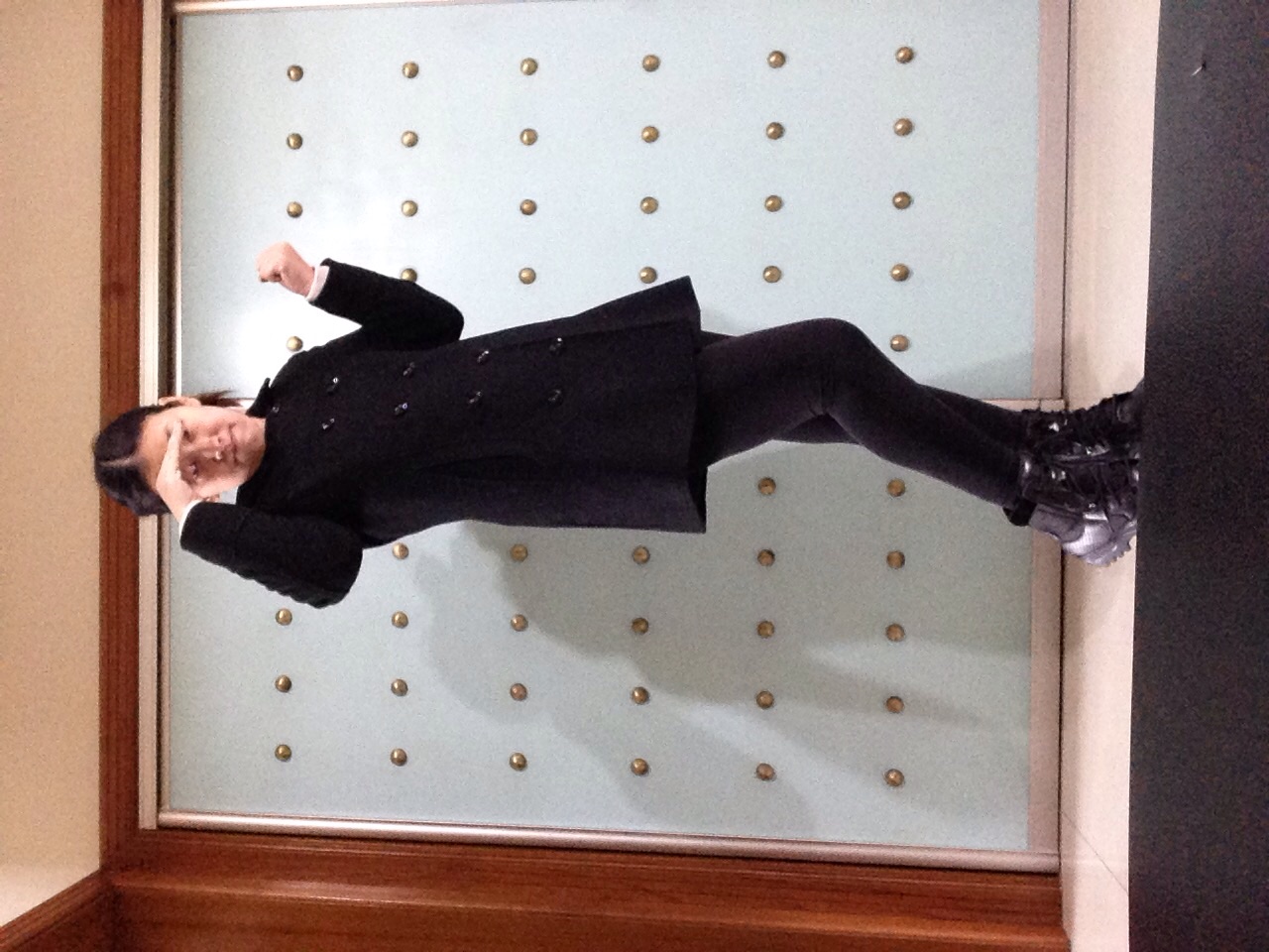女黑色双排扣尼大衣