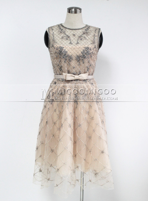 华伦天奴同款超仙重钉珠精美V家刺绣蕾丝奢华淑女名媛连衣裙