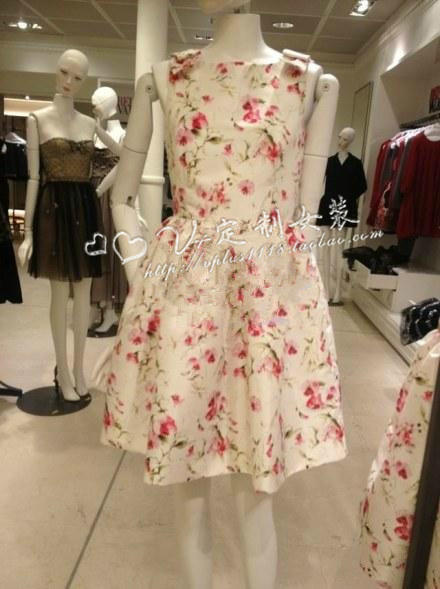 印花朵蓬蓬裙收腰无袖 连衣裙