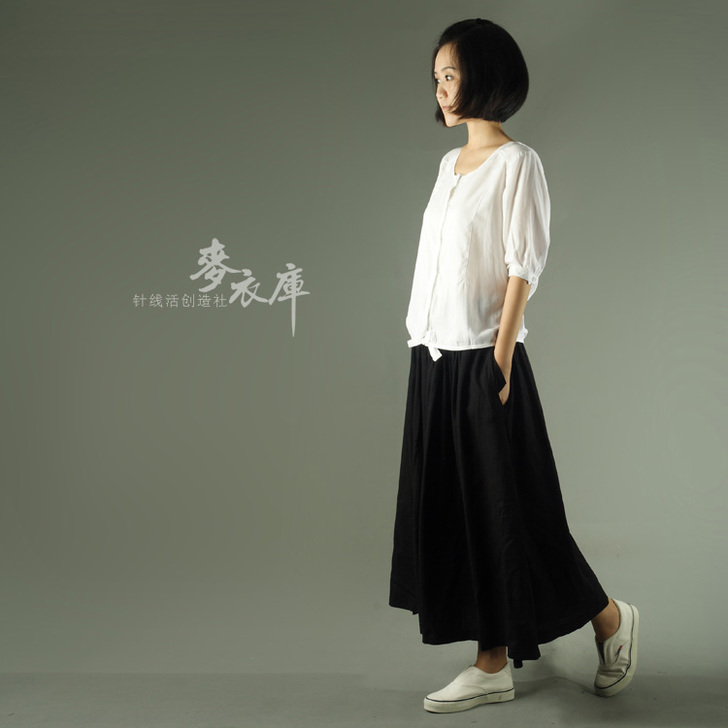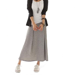 韩版纯棉松紧腰中长裙