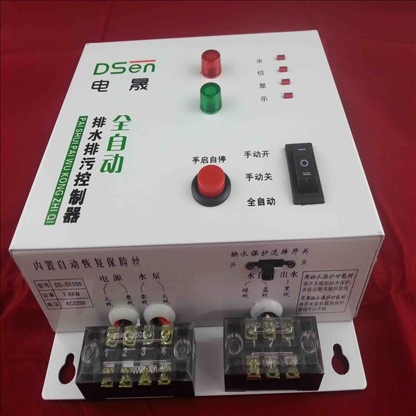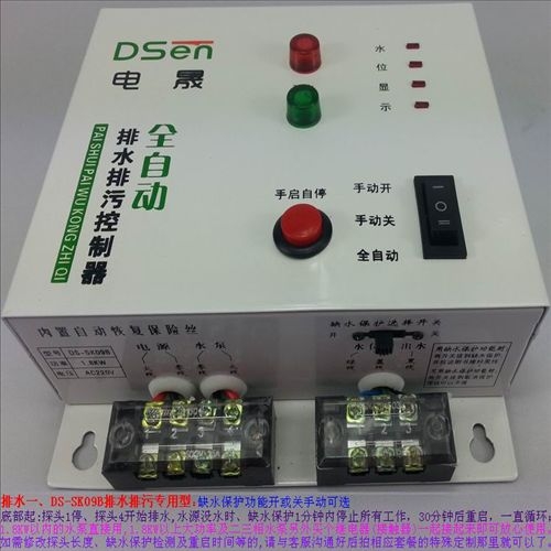 4排水排污型:DS-SK09B水位高于设定高水位时自动启动水泵排水;水位达到设定低水位时自动停止水泵排水。