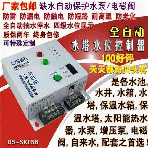 1普通常规型:DS-SK05B水位低于设定低水位时自动启动水泵补水;水位达到设定高水位时自动停  止水泵抽水,有缺水保护,没水检测1分钟,30分钟重启