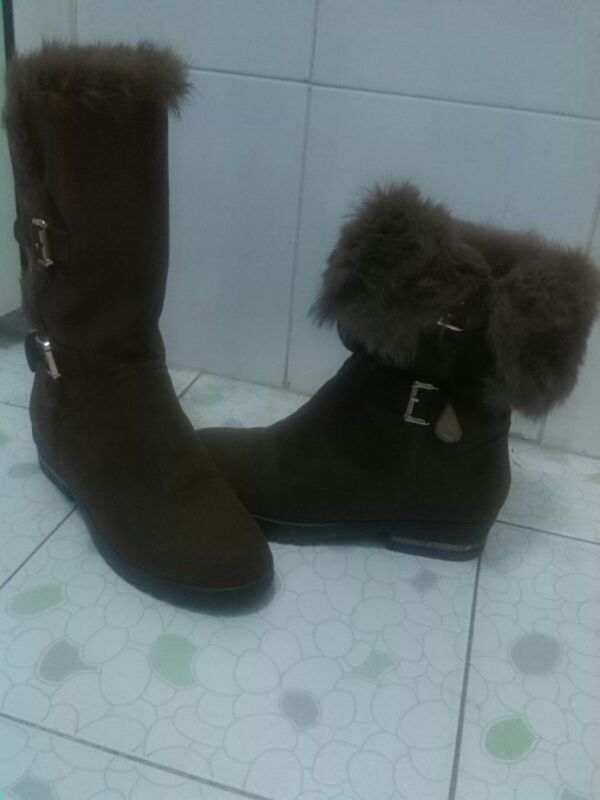 此为中长款翻毛皮马靴,去图片所示有两种穿法,只穿过一两次,绝对没有瑕疵