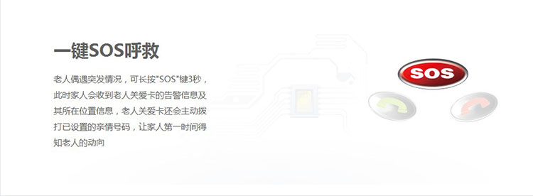 艾信通老人关爱卡集人员定位与远程监护于一身,随时随地让您知道他/她的位置,更拥有远程语音功能,让您清楚知道他/她身边所处的环境。