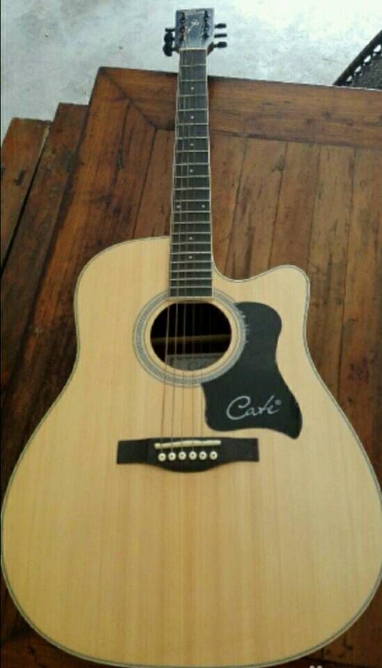 高档原木吉他,色泽鲜亮,很有气质 。弦距短,音色好,吉他保养的好。本人在校学生没时间学。喜欢的带走吧!
