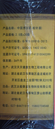 御龙圣杰牌养生茶原料是松针。松树是地球上最古老最长寿的植物。是万木之王,有“万年松”、“不老松”的说法。凝集天地日月之灵气,集松树生物活性与独特的药效与一身。内含30多种活性极强的物质,如黄酮,青花素、氨基酸、脯氨酸、丙氨酸、硒、锌、钾、镁、铁、18种天然维生素。科学家已证实,这些活性物质对50多种疾病有着很好的改善作用。 中医认为松针味苦,无毒、性温、有祛风、活血、明目、安神、解毒、止痒、去疲劳、抗衰老等功效。主治流行感冒、风湿关节痛、跌打肿痛、夜盲症、高血压、神经衰弱、冻疮、慢性支气管炎、心脑血病、糖尿病等疾病。我国唐代医圣孙思邈喝松针茶活了141岁。道家祖师张三丰活了200多岁....是道家、仙人的食物!是真正的抵抗疾病和衰老的长寿茶!松针无愧是天下第一茶,中国国茶,茶中至尊! 第一、对血液和血管特别有好处。 血管通 第二、对肠道和消化系统特别有利。肠胃通 第三、调脏腑,补元气,提高免疫力。气血通。 第四、调节人体酸碱平衡。长期喝使人体呈弱碱性,远离疾病和癌症肿瘤。 松针茶疗效有以下方面: 第一、快速降血压。长期喝可稳定血压。喝松针茶,血管畅通,弹性增加,心脑细胞活化、神经功能恢复。30天血脂、血压明显下降。 第二、化血栓,中风偏瘫有明显改善。喝1—2个月,偏瘫的肢体明显感觉疼麻痒,常期喝能化解浑身血栓,头脑清爽。 第三、降脂又补肾,天然辟谷瘦身。 第四、降血糖,康复糖尿病等并发症。 第五、养脑、安神,促进睡眠。 第六、心脏变年轻,远离心梗猝死 第七、抗衰老,延年益寿。 第八、痛风好了,美味随便吃。 第九、消除便秘、清理肠胃,排的畅 第十、神奇的活性物质,一杯松针茶室外放7天不变质。卤肉卤鸡时加几袋,做好放在室内三天不变质,且增加了松香味。做米饭时放入松针茶水,饭香可口又养生。 养生茶制作工艺独特,采集神龙架、木兰山等原始生态无污染的松林,多次洗净后晒干、烘干。碎化后生物发酵5-6年,绝对不加任何添加物,手工炮制。口感清香,无涩口。可根据个人口感爱好加入蜂蜜。适合中老年人每天养生必喝的茶。