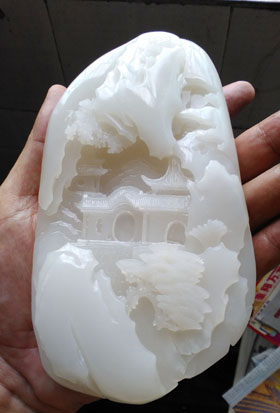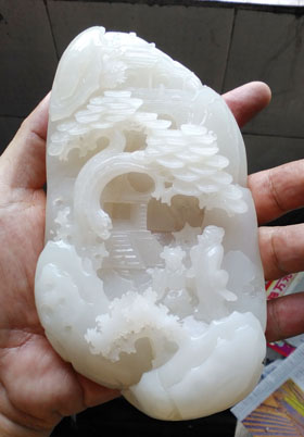 克,雕工精致,不老松与亭台楼阁相呼应,仙童与老翁刻画生动。