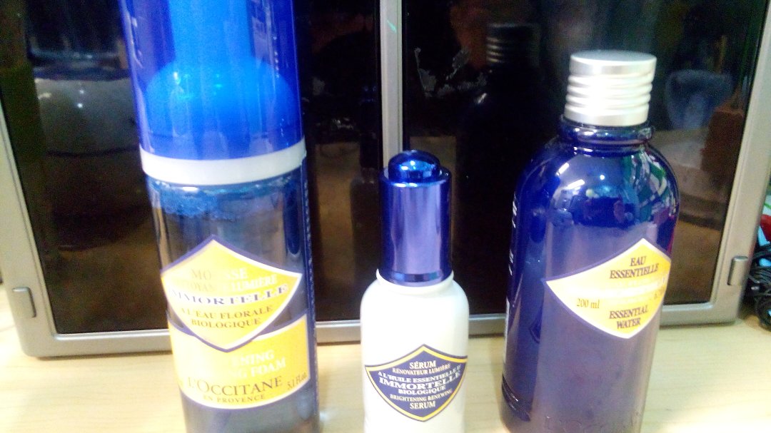 欧舒丹蜡菊精华液+爽肤水+洁面泡沫(公司年会抽到的奖品)