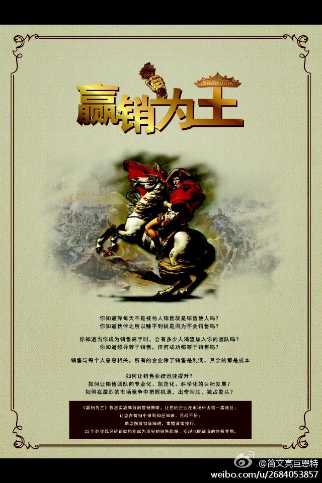 巨恩特有这样一句话“真感情就是好文章”。营销为王的课堂上有太多太多真挚的眼泪和真实的感动,来自人性最初的感动和泪水,发自内心最深处的感激和鼓励。《营销为王》不仅仅只是简单销售技巧的培训,而是人与人、心与心之间的交流和互动。现在的你,可能没有美丽的外表,没有显赫的家世,也没有富可敌国的财富,但是请你相信,只要你一直坚持一直努力,你就是你人生最大的赢家。“爱的你们最棒”!