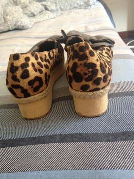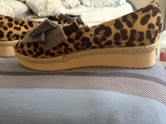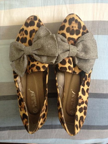 转欧美风杂志款 豹纹混搭超大蝴蝶结厚底松糕坡跟浅口小尖头单鞋穿过一次,小了,只能忍痛割爱了。