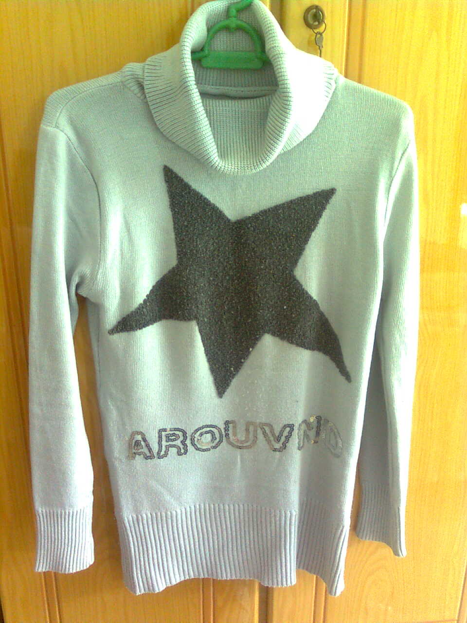 灰白色高领毛衣、