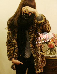 日本性感豹纹高档人造毛皮草外套大衣